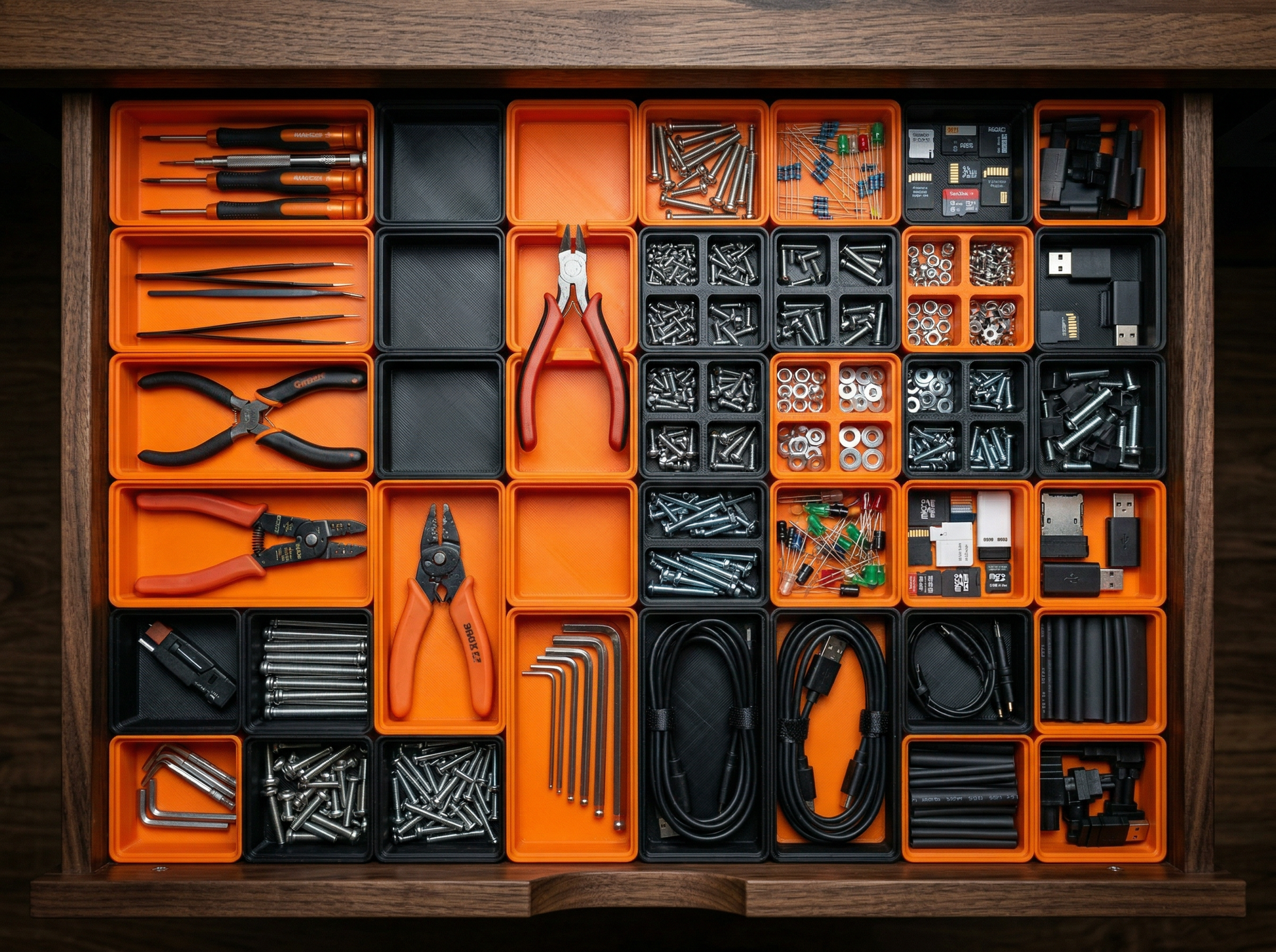 Our custom 3D printed Gridfinity storage system gives you a modular, stackable, and easy-to-reconfigure way to organize your workspace. Whether you are setting up a tool bench, hobby station, office desk, workshop, or maker space, these storage pieces help keep everything visible, accessible, and exactly where it belongs.